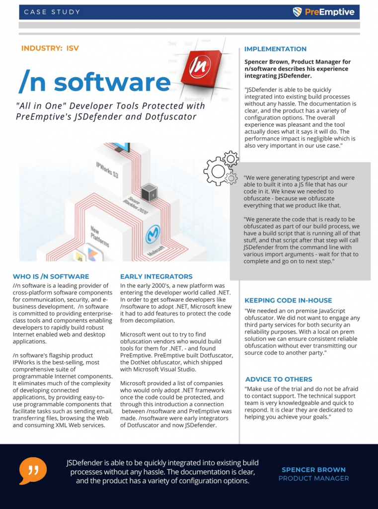 你是否在寻找最有效的方法来保护应用程序?无论你的应用是已经发布的,还是准备发布的,我们都可以提供帮助。PreEmptive有丰富的经验,帮助独立软件供应商保护应用程序,提供最新的混淆技术和最高水平的经验丰富的技术支持。